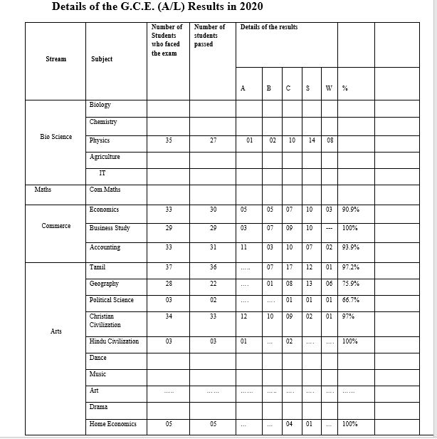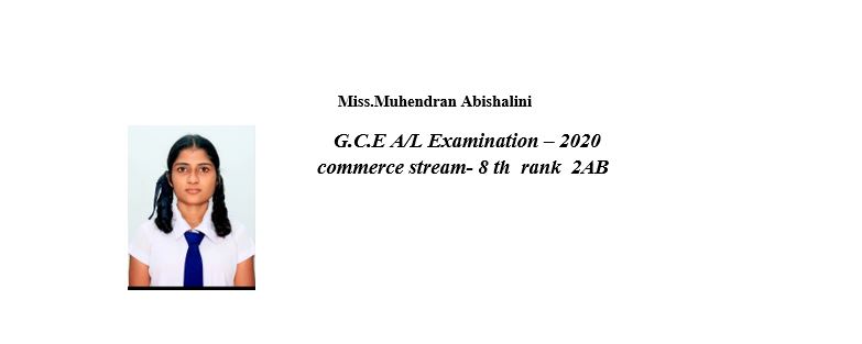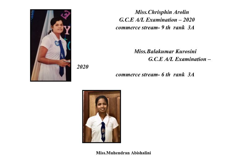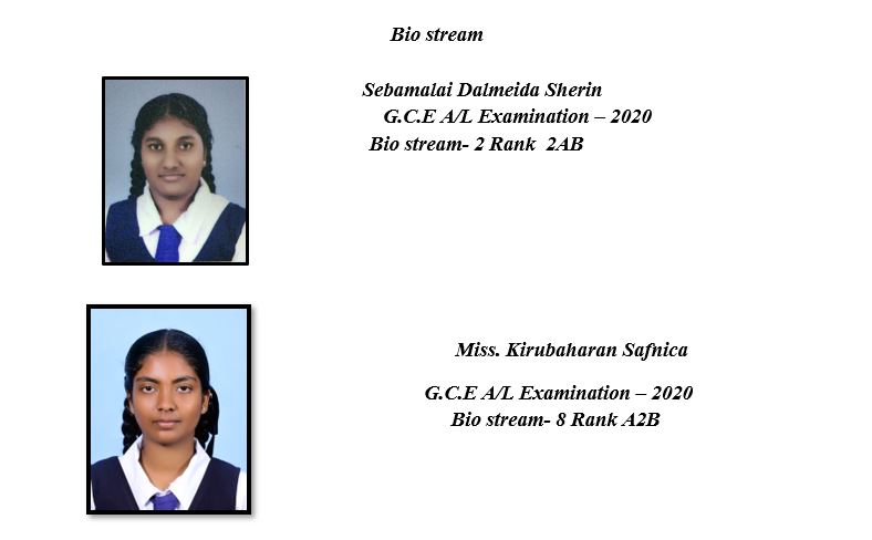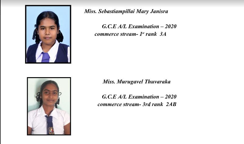 மேலும் விஞ்ஞான பிரிவை சேர்ந்த மாணவி செபமாலை டல்மேடா செரீன் 2A B தர சித்தியை பெற்று மாவட்ட ரீதியில் இரண்டாம் இடத்தை பெற்று கொண்டுள்ளார்.