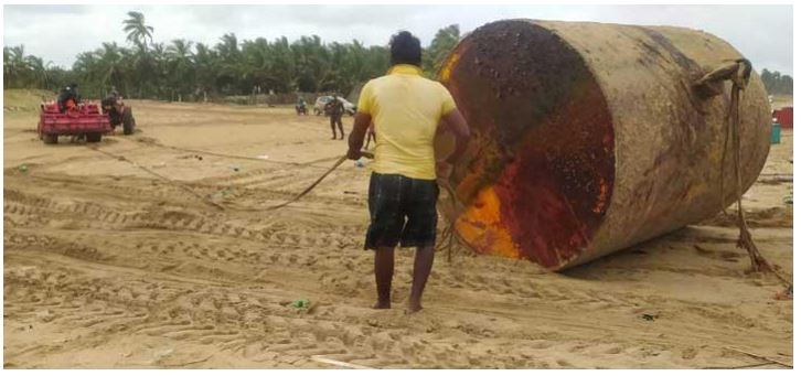 இலங்கையில் கரையொதுங்கிய பிரமாண்ட உருளை!