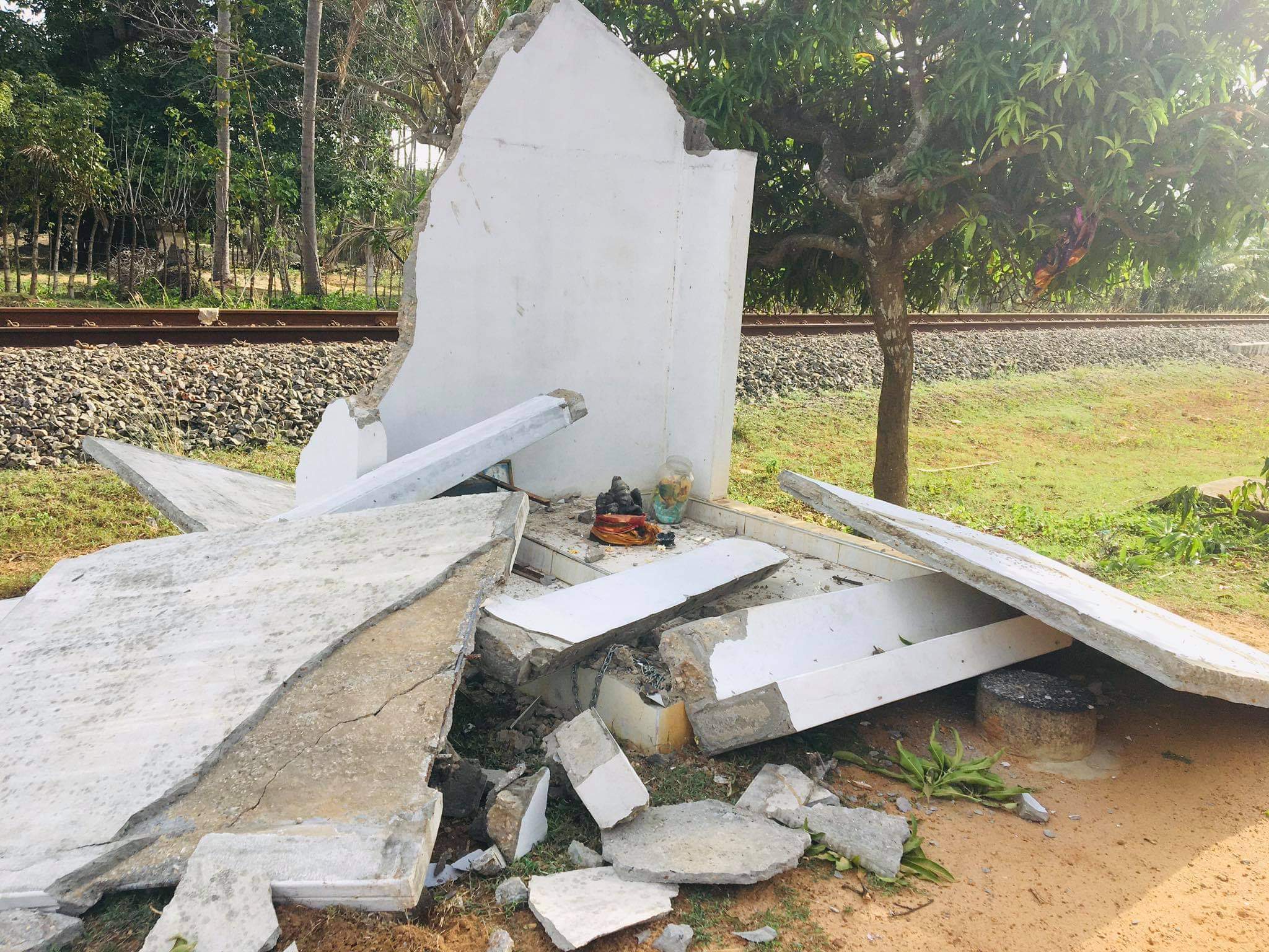 ஏ9 வீதியில் கொடிகாமத்திற்கும் மிருசுவிலுக்கும் இடைப்பட்ட வீதியோரத்தில் அமைக்கப்பட்ட பிள்ளையார் ஆலயம் இனந்தெரியாதோரால் இடித்தழிக்கப்பட்டுள்ளது.