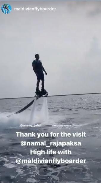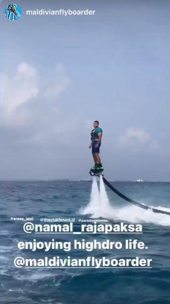 விளையாட்டுத்துறை அமைச்சர் நாமல் ராஜபக்ஷ மாலைதீவில் நீர் விளையாட்டுகளில் ஈடுபடுவது போன்ற புகைப்படங்கள் வெளியாகியதையடுத்து சமூக வலைதளங்களில் பரபரப்பு ஏற்பட்டுள்ளது.