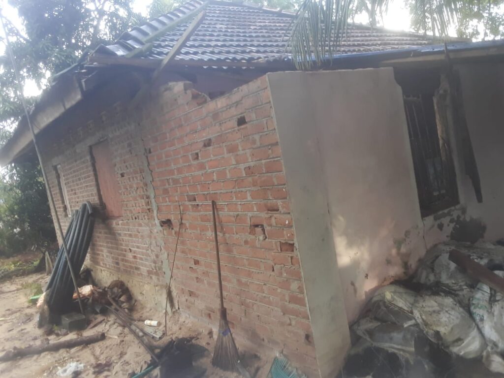 வீடு கிட்டத்தட்ட முழுமையாக சேதமடைந்தது, மேலும் வீட்டில் இருந்த ஆறு மூடை நெல், ஒரு மூடை அரிசி, வீட்டு உபகரணங்கள், நீர் இறைக்கும் இயந்திரம் மற்றும் விவசாய உபகரணங்கள் அனைத்தும் சேதமடைந்துள்ளன.