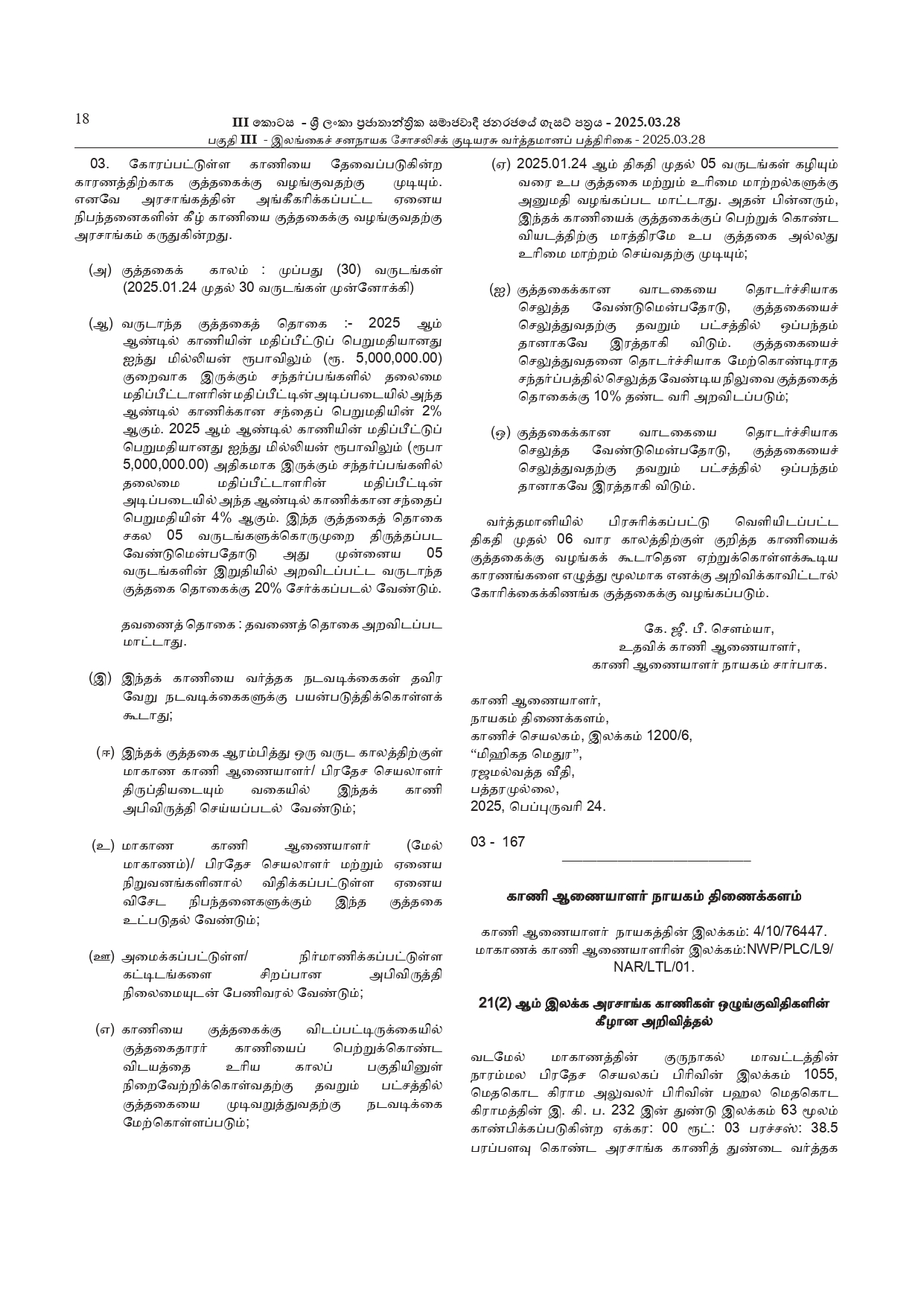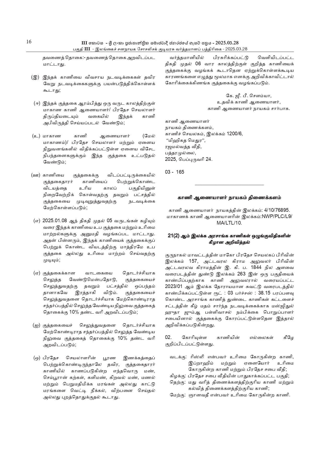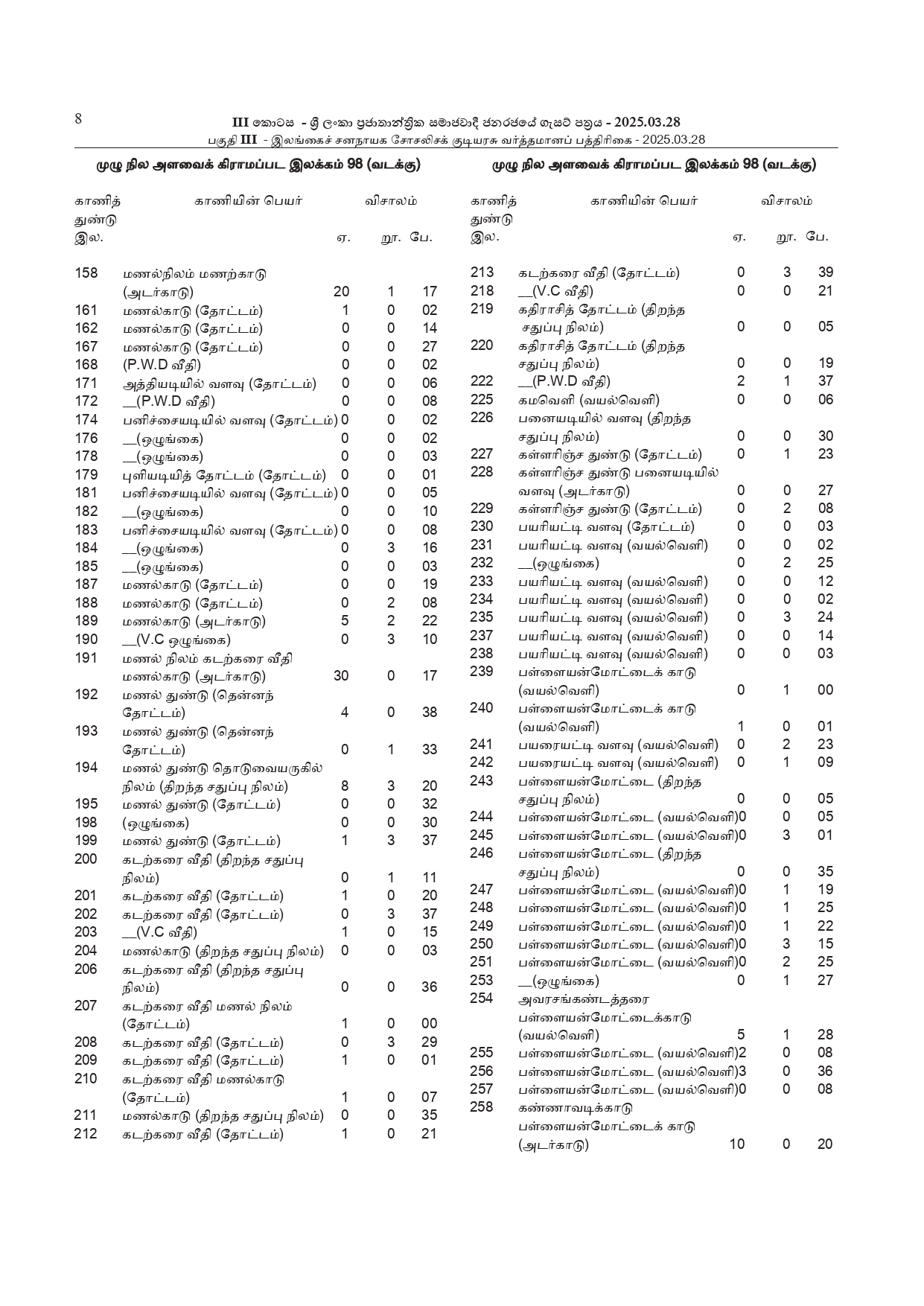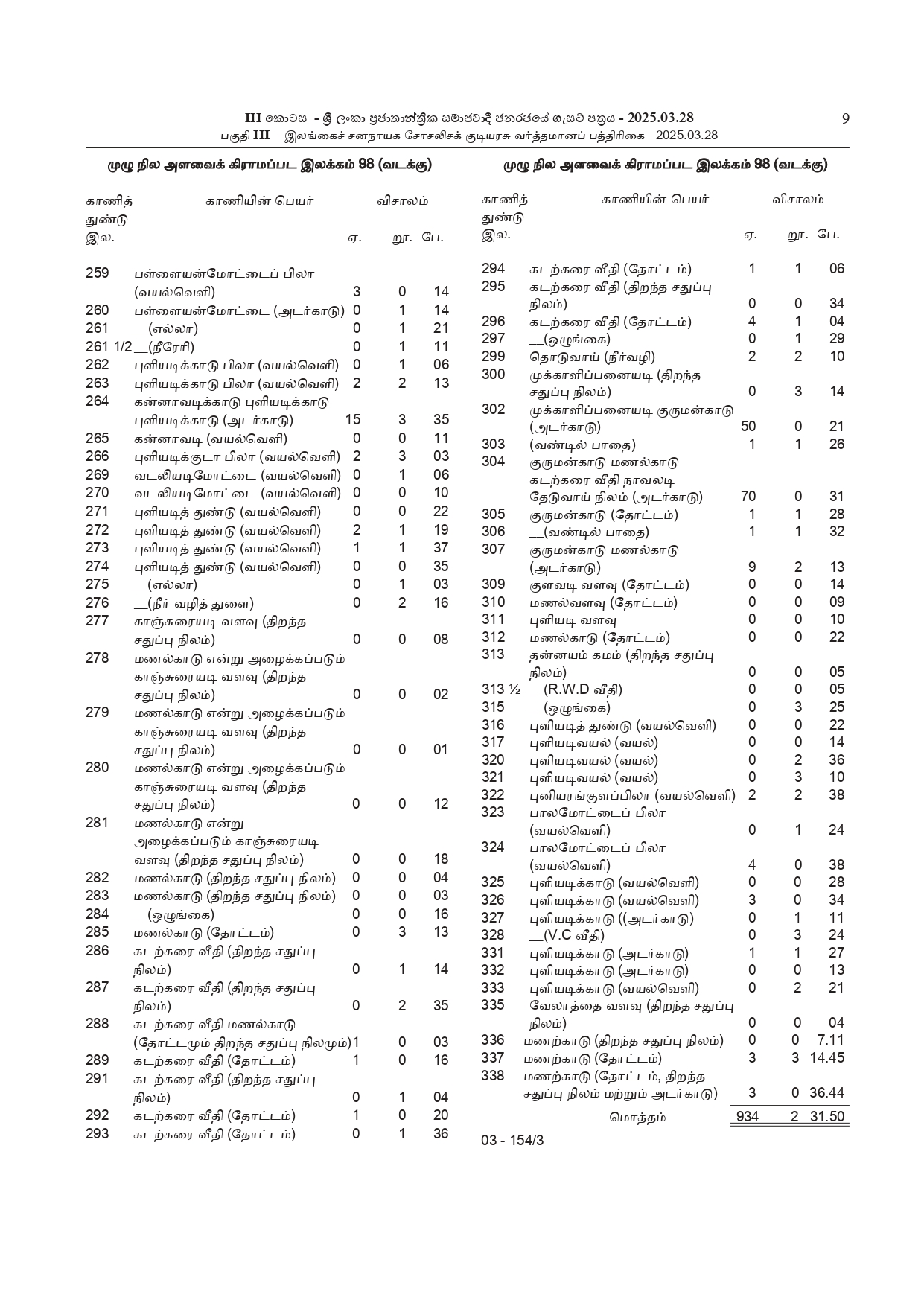 யாழ்ப்பாணம், கிளிநொச்சி, முல்லைத்தீவில் மொத்தமாக 5,940 ஏக்கர் காணிகள் 3 மாதங்களுக்குள் ஒருவரும் உரிமை கோராவிட்டால் அரச காணிகளாக பிரகடனப்படுத்தப்படும் என்று 28.03.2025 திகதியிட்ட 2430 இலக்கமிட்ட வர்த்தமானியில் காணி நிர்ணய கட்டளைச் சட்டத்தின் 4ஆம் பிரிவின் கீழ் பிரசுரமாகியுள்ளது.