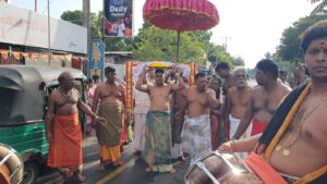 அதன் படி யாழ் சட்டநாதர் சிவன் ஆலயத்திற்கு அருகில் உள்ள வேல் மடம் முருகன் ஆலயத்தில் இன்றைய தினம் திங்கட்கிழமை நடைபெற்ற விஷேட பூஜை வழிபாடுகளை தொடர்ந்து அங்கிருந்து சிறிய தேர் ஒன்றில் கொடிச்சீலை பருத்தித்துறை வீதி ஊடக எடுத்து செல்லப்பட்டு நல்லூர் கந்தசுவாமி ஆலயத்தினை வந்தடைந்து. கொடிச்சீலை நல்லூர் ஆலய பிரதம குருக்களிடம் கையளிக்கப்பட்டது.