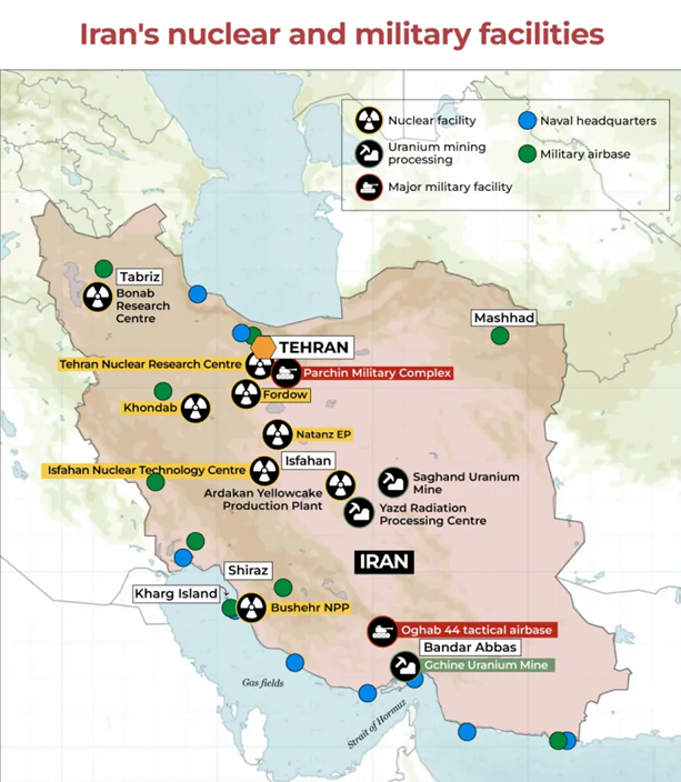 2025-ஆம் ஆண்டின் 12 நாள் போரின் போதும், இந்த ஆண்டின் மிகச் சமீபத்திய தாக்குதல்களின் போதும் அமெரிக்காவும் இஸ்ரேலும் ஈரானின் அணுசக்தி நிலையங்களைக் குறிவைத்துத் தாக்கி, அவற்றில் பெரும் பகுதியை அழித்துவிட்டதாகக் கூறினாலும், இந்த வரைபடம் இந்த ஆண்டு வரையிலான ஈரானின் அணுசக்தி நிலையங்களின் நிலைகள் குறித்து நமக்குத் தெரிந்தவற்றைக் காட்டுகிறது:
